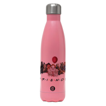 Halloween Friends, Μεταλλικό παγούρι θερμός Ροζ Ματ (Stainless steel), διπλού τοιχώματος, 500ml