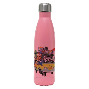 Stitch Halloween scooby car, Μεταλλικό παγούρι θερμός Ροζ Ματ (Stainless steel), διπλού τοιχώματος, 500ml