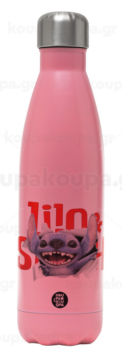 Stitch movie, Μεταλλικό παγούρι θερμός Ροζ Ματ (Stainless steel), διπλού τοιχώματος, 500ml