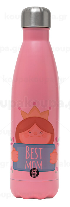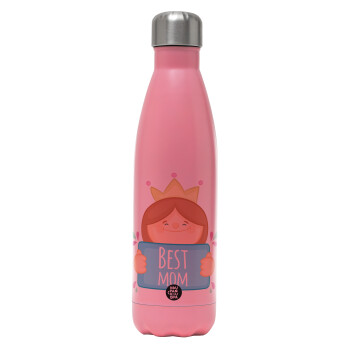 Best mom Princess, Μεταλλικό παγούρι θερμός Ροζ Ματ (Stainless steel), διπλού τοιχώματος, 500ml