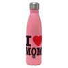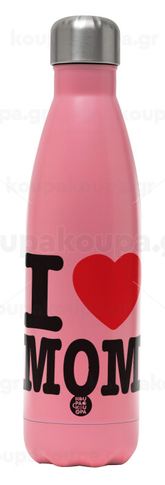 I LOVE MOM, Μεταλλικό παγούρι θερμός Ροζ Ματ (Stainless steel), διπλού τοιχώματος, 500ml