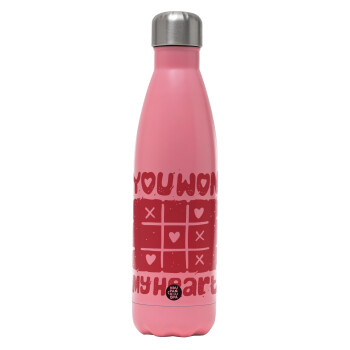 Τρίλιζα you won my heart, Μεταλλικό παγούρι θερμός Ροζ Ματ (Stainless steel), διπλού τοιχώματος, 500ml