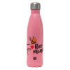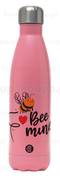Bee mine!!!, Μεταλλικό παγούρι θερμός Ροζ Ματ (Stainless steel), διπλού τοιχώματος, 500ml