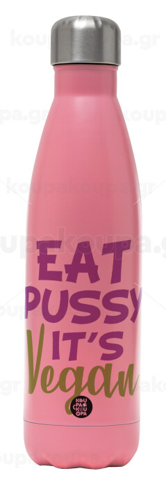 EAT pussy it's vegan, Μεταλλικό παγούρι θερμός Ροζ Ματ (Stainless steel), διπλού τοιχώματος, 500ml