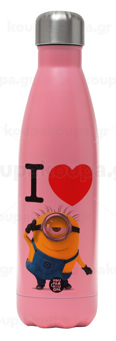 I love by minion, Μεταλλικό παγούρι θερμός Ροζ Ματ (Stainless steel), διπλού τοιχώματος, 500ml