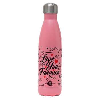 Love You Forever, Μεταλλικό παγούρι θερμός Ροζ Ματ (Stainless steel), διπλού τοιχώματος, 500ml