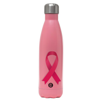 Παγκόσμια Ημέρα κατά του Καρκίνου, Μεταλλικό παγούρι θερμός Ροζ Ματ (Stainless steel), διπλού τοιχώματος, 500ml