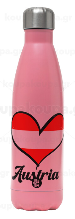 Austria flag, Μεταλλικό παγούρι θερμός Ροζ Ματ (Stainless steel), διπλού τοιχώματος, 500ml