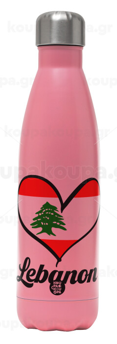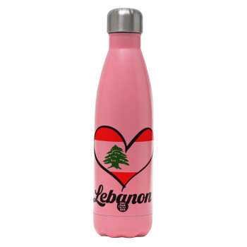 Lebanon flag, Μεταλλικό παγούρι θερμός Ροζ Ματ (Stainless steel), διπλού τοιχώματος, 500ml