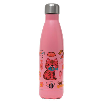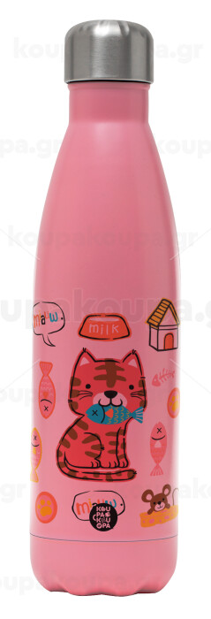 Cats and Fishes, Μεταλλικό παγούρι θερμός Ροζ Ματ (Stainless steel), διπλού τοιχώματος, 500ml