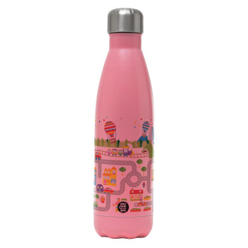 City road track maps, Μεταλλικό παγούρι θερμός Ροζ Ματ (Stainless steel), διπλού τοιχώματος, 500ml