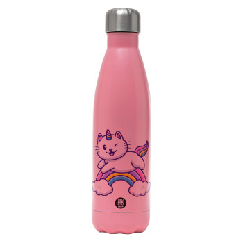 Cute cat unicorn, Μεταλλικό παγούρι θερμός Ροζ Ματ (Stainless steel), διπλού τοιχώματος, 500ml