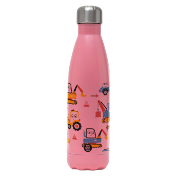 Hand drawing building truck, Μεταλλικό παγούρι θερμός Ροζ Ματ (Stainless steel), διπλού τοιχώματος, 500ml