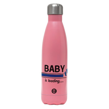 Baby is Loading BOY, Μεταλλικό παγούρι θερμός Ροζ Ματ (Stainless steel), διπλού τοιχώματος, 500ml