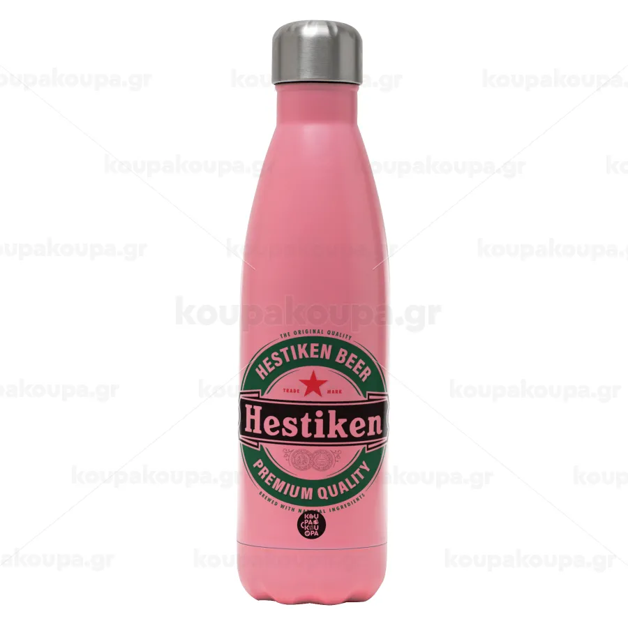 Hestiken Beer, Μεταλλικό παγούρι θερμός Ροζ Ματ (Stainless steel), διπλού τοιχώματος, 500ml