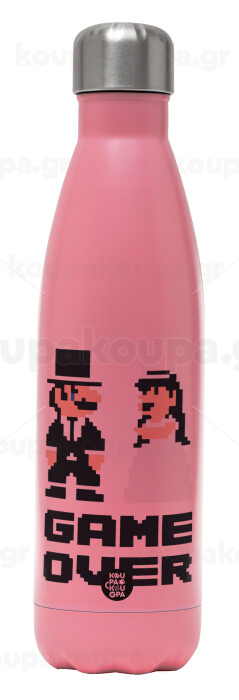 8bit Game Over Couple Wedding, Μεταλλικό παγούρι θερμός Ροζ Ματ (Stainless steel), διπλού τοιχώματος, 500ml