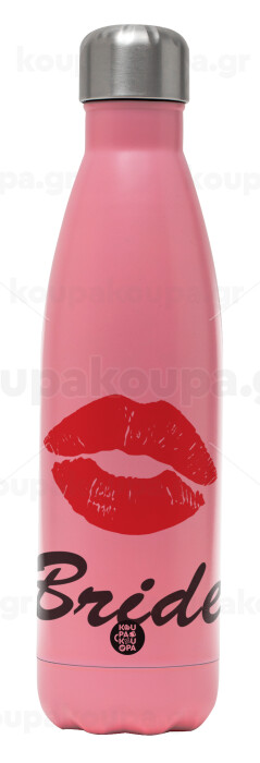 Bride kiss, Μεταλλικό παγούρι θερμός Ροζ Ματ (Stainless steel), διπλού τοιχώματος, 500ml