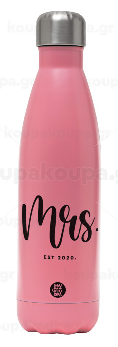 Mr & Mrs (Mrs), Μεταλλικό παγούρι θερμός Ροζ Ματ (Stainless steel), διπλού τοιχώματος, 500ml