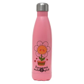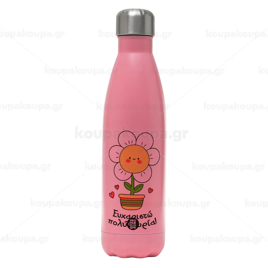 Ευχαριστώ πολύ κυρία!!!, Μεταλλικό παγούρι θερμός Ροζ Ματ (Stainless steel), διπλού τοιχώματος, 500ml