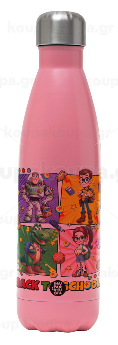 Back to the School Buzz & Friends, Μεταλλικό παγούρι θερμός Ροζ Ματ (Stainless steel), διπλού τοιχώματος, 500ml
