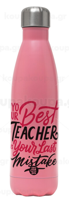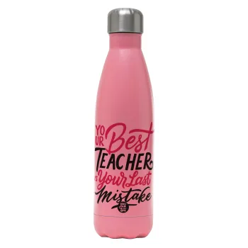 Typography quotes your best teacher is your last mistake, Μεταλλικό παγούρι θερμός Ροζ Ματ (Stainless steel), διπλού τοιχώματος, 500ml