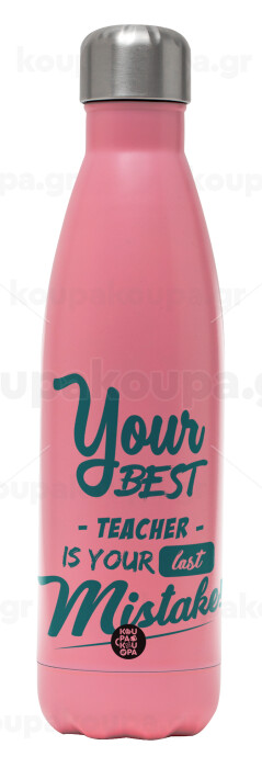 Your best teacher is your last mistake, Μεταλλικό παγούρι θερμός Ροζ Ματ (Stainless steel), διπλού τοιχώματος, 500ml