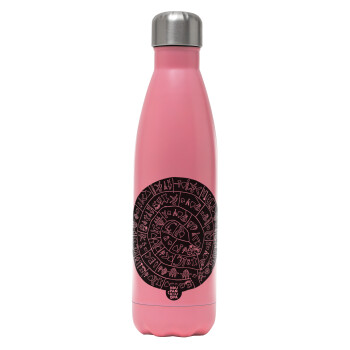 Δίσκος Φαιστού, Μεταλλικό παγούρι θερμός Ροζ Ματ (Stainless steel), διπλού τοιχώματος, 500ml