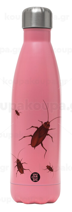 Κατσαρίδα, Μεταλλικό παγούρι θερμός Ροζ Ματ (Stainless steel), διπλού τοιχώματος, 500ml