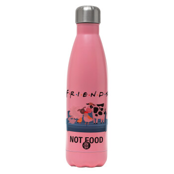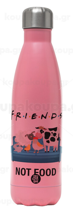 friends, not food, Μεταλλικό παγούρι θερμός Ροζ Ματ (Stainless steel), διπλού τοιχώματος, 500ml