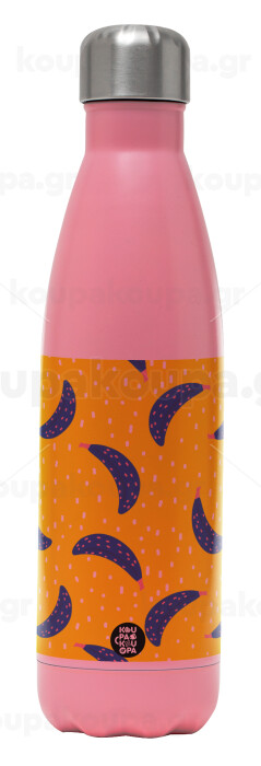 Yellow seamless with blue bananas, Μεταλλικό παγούρι θερμός Ροζ Ματ (Stainless steel), διπλού τοιχώματος, 500ml