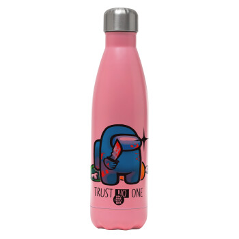 Among Trust no one, Μεταλλικό παγούρι θερμός Ροζ Ματ (Stainless steel), διπλού τοιχώματος, 500ml