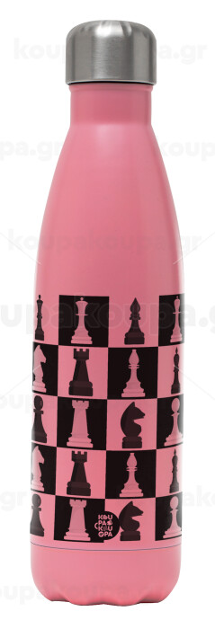 Chess set, Μεταλλικό παγούρι θερμός Ροζ Ματ (Stainless steel), διπλού τοιχώματος, 500ml
