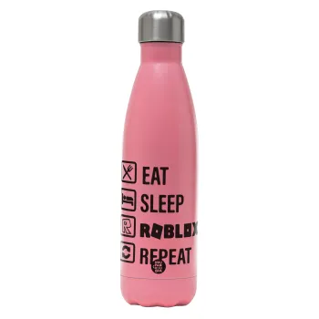 Eat, Sleep, Roblox, Repeat, Μεταλλικό παγούρι θερμός Ροζ Ματ (Stainless steel), διπλού τοιχώματος, 500ml