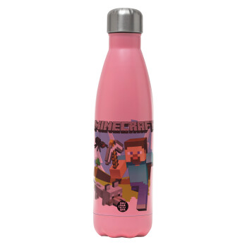 Minecraft Alex, Μεταλλικό παγούρι θερμός Ροζ Ματ (Stainless steel), διπλού τοιχώματος, 500ml