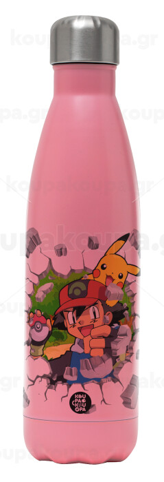 Pokemon brick, Μεταλλικό παγούρι θερμός Ροζ Ματ (Stainless steel), διπλού τοιχώματος, 500ml
