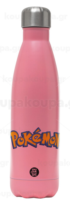 Pokemon, Μεταλλικό παγούρι θερμός Ροζ Ματ (Stainless steel), διπλού τοιχώματος, 500ml