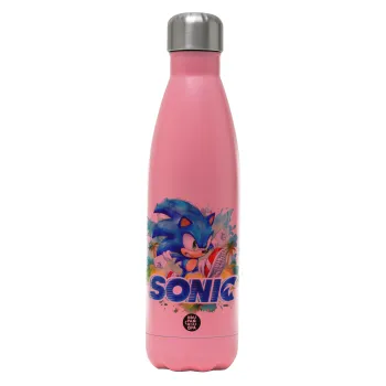 Σόνικ ο Σκαντζόχοιρος, Μεταλλικό παγούρι θερμός Ροζ Ματ (Stainless steel), διπλού τοιχώματος, 500ml