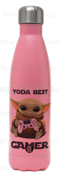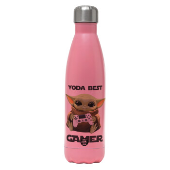 Yoda Best Gamer, Μεταλλικό παγούρι θερμός Ροζ Ματ (Stainless steel), διπλού τοιχώματος, 500ml
