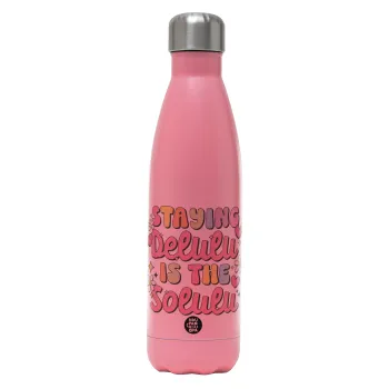 Delulu, Μεταλλικό παγούρι θερμός Ροζ Ματ (Stainless steel), διπλού τοιχώματος, 500ml