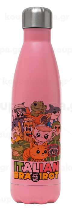 Italian Brainrot friends, Μεταλλικό παγούρι θερμός Ροζ Ματ (Stainless steel), διπλού τοιχώματος, 500ml