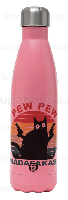 PEW PEW madafakas, Μεταλλικό παγούρι θερμός Ροζ Ματ (Stainless steel), διπλού τοιχώματος, 500ml