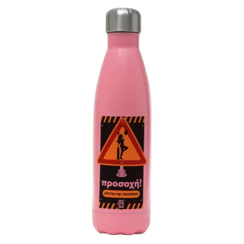 Προσοχή Γίνεται της πουτ.νας, Μεταλλικό παγούρι θερμός Ροζ Ματ (Stainless steel), διπλού τοιχώματος, 500ml