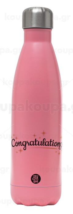 Congratulations, Μεταλλικό παγούρι θερμός Ροζ Ματ (Stainless steel), διπλού τοιχώματος, 500ml