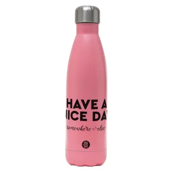 Have a nice day somewhere else, Μεταλλικό παγούρι θερμός Ροζ Ματ (Stainless steel), διπλού τοιχώματος, 500ml