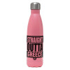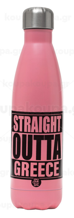 Straight Outta greece, Μεταλλικό παγούρι θερμός Ροζ Ματ (Stainless steel), διπλού τοιχώματος, 500ml