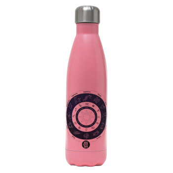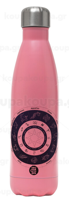 Ζωδιακός κύκλος, Μεταλλικό παγούρι θερμός Ροζ Ματ (Stainless steel), διπλού τοιχώματος, 500ml