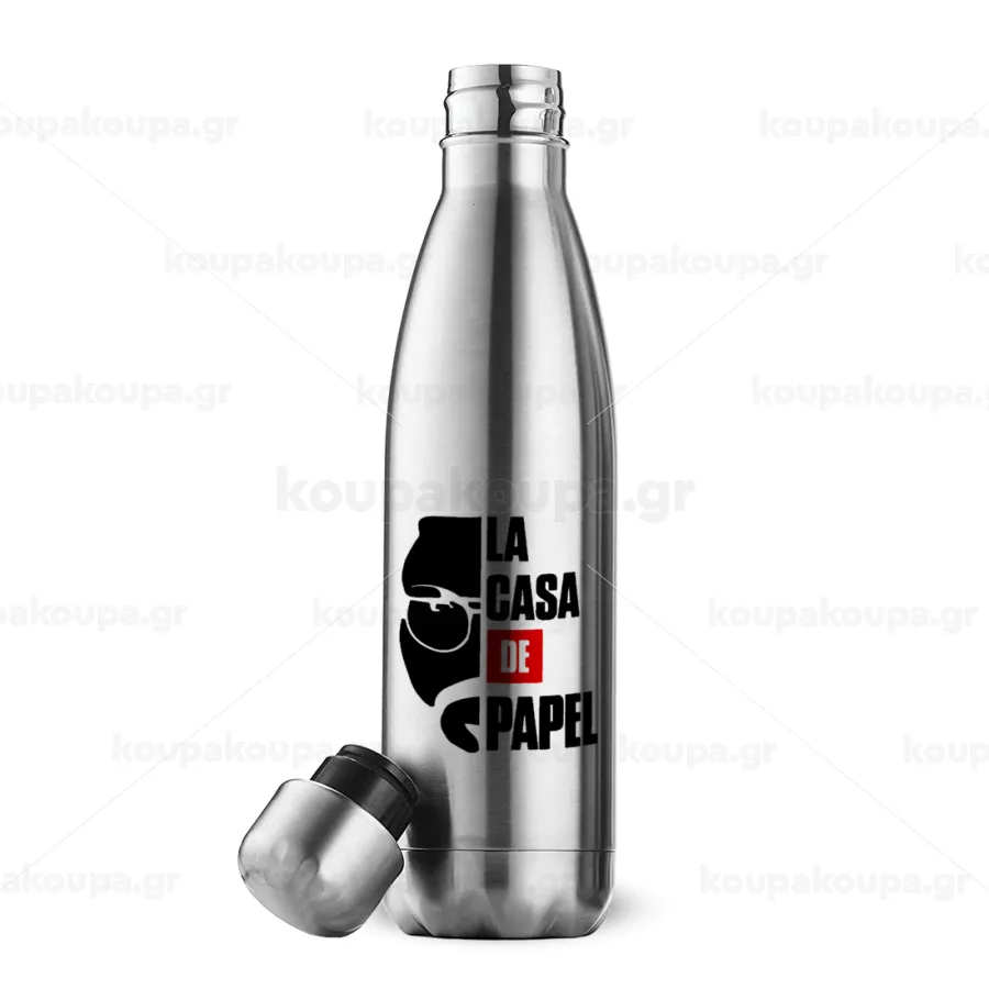 La casa de papel, Μεταλλικό παγούρι θερμός Inox (Stainless steel), διπλού τοιχώματος, 500ml
