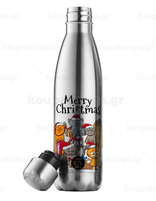 Merry Christmas Cats, Μεταλλικό παγούρι θερμός Inox (Stainless steel), διπλού τοιχώματος, 500ml