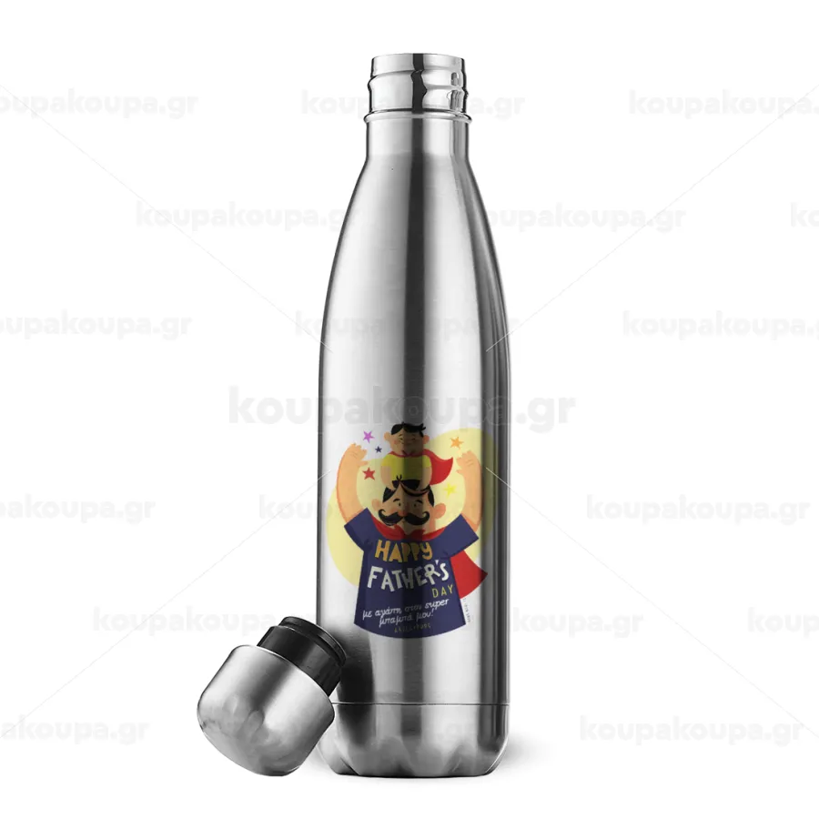 Happy Fathers Day με όνομα, Μεταλλικό παγούρι θερμός Inox (Stainless steel), διπλού τοιχώματος, 500ml