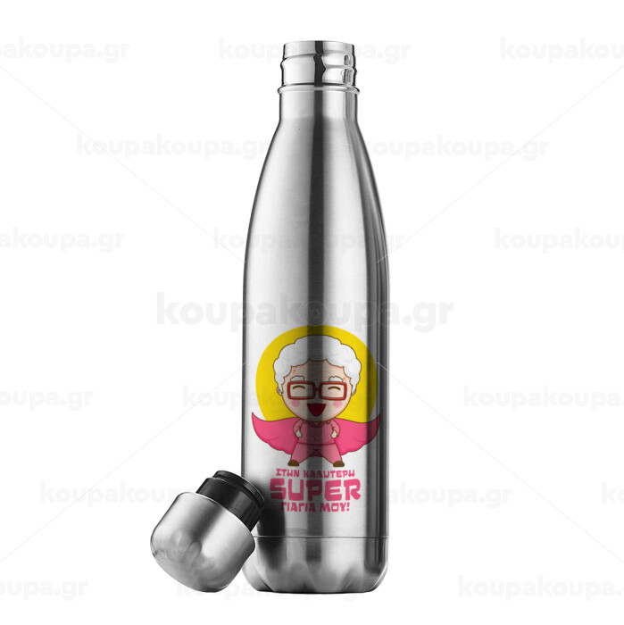 Στην καλύτερη Super γιαγιά μου!, Μεταλλικό παγούρι θερμός Inox (Stainless steel), διπλού τοιχώματος, 500ml